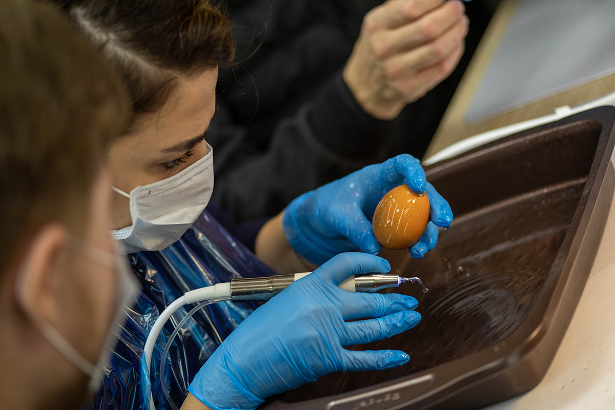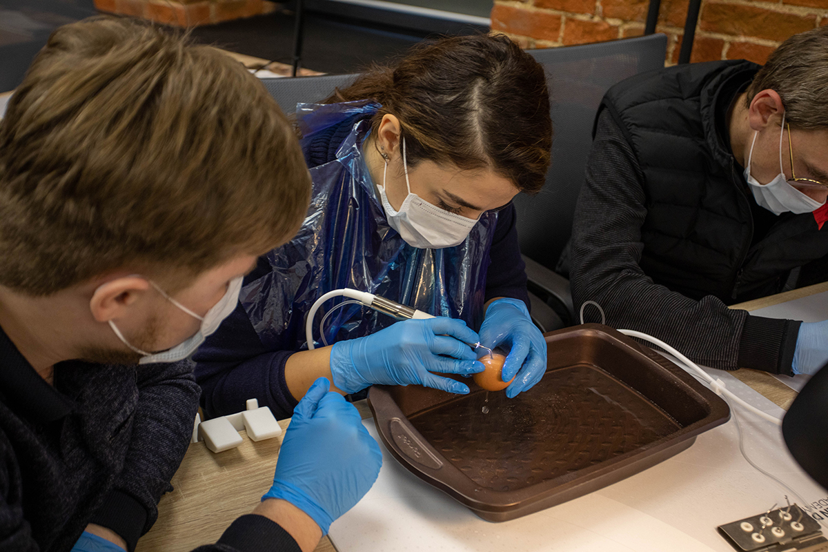 А на практической части участники практиковались на специальных моделях. Они научились проводить синуслифтинг, забор блока, остеотомию, расщепление и закрытый синус-лифтинг.